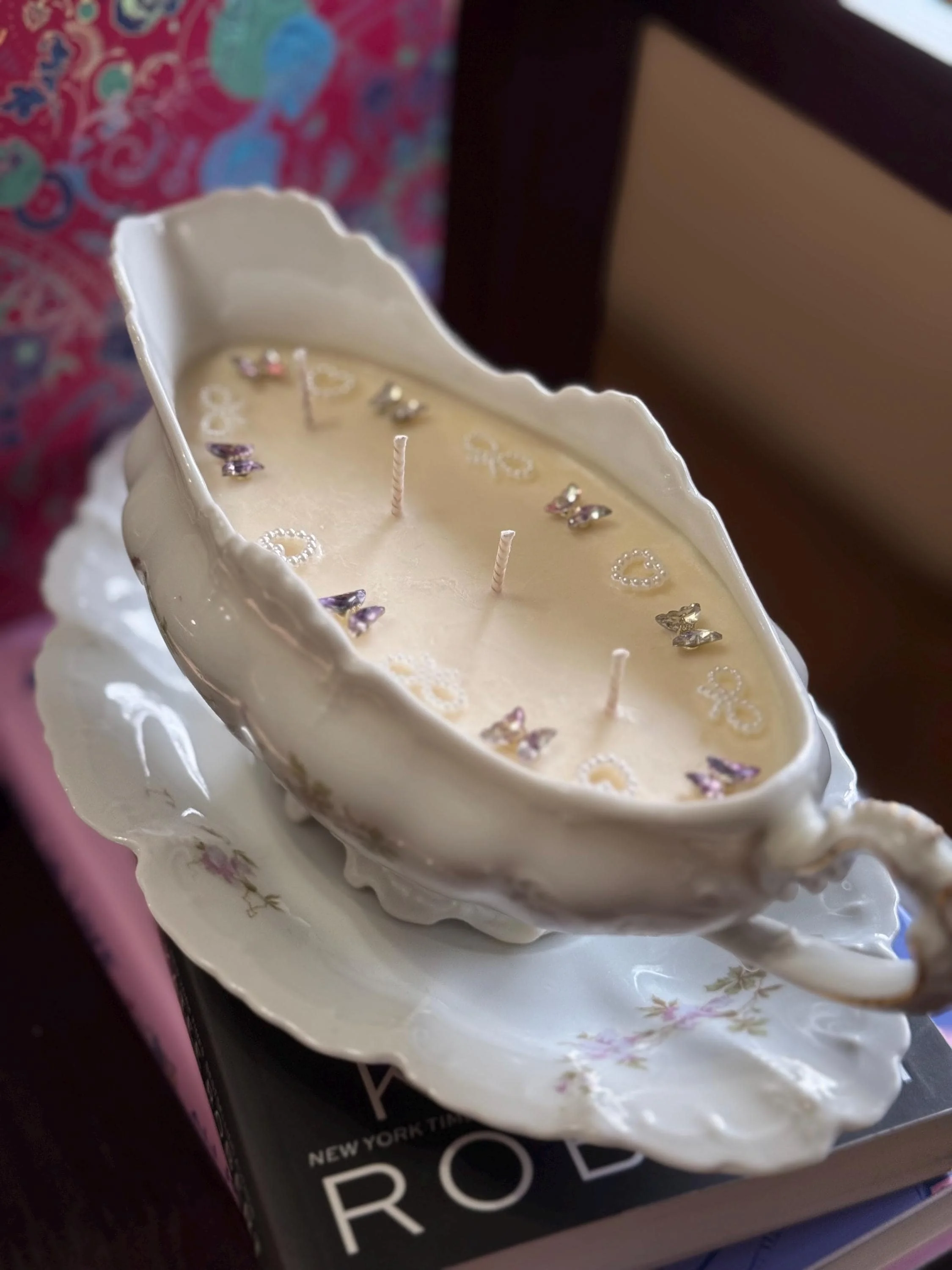 Allow the air to soften, the world to hush, and romance to linger like a love letter sealed with wax. A Novel Indulgence is a candle spun from sweetness and longing, inspired by moonlit parlors, secret glances across ballrooms, and the delicate thrill of a story unfolding one page at a time.