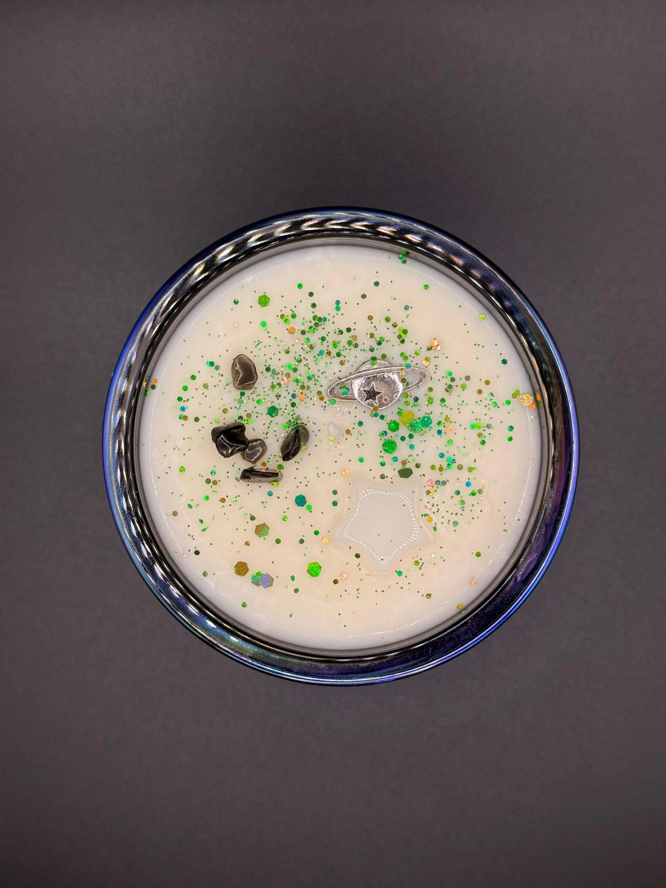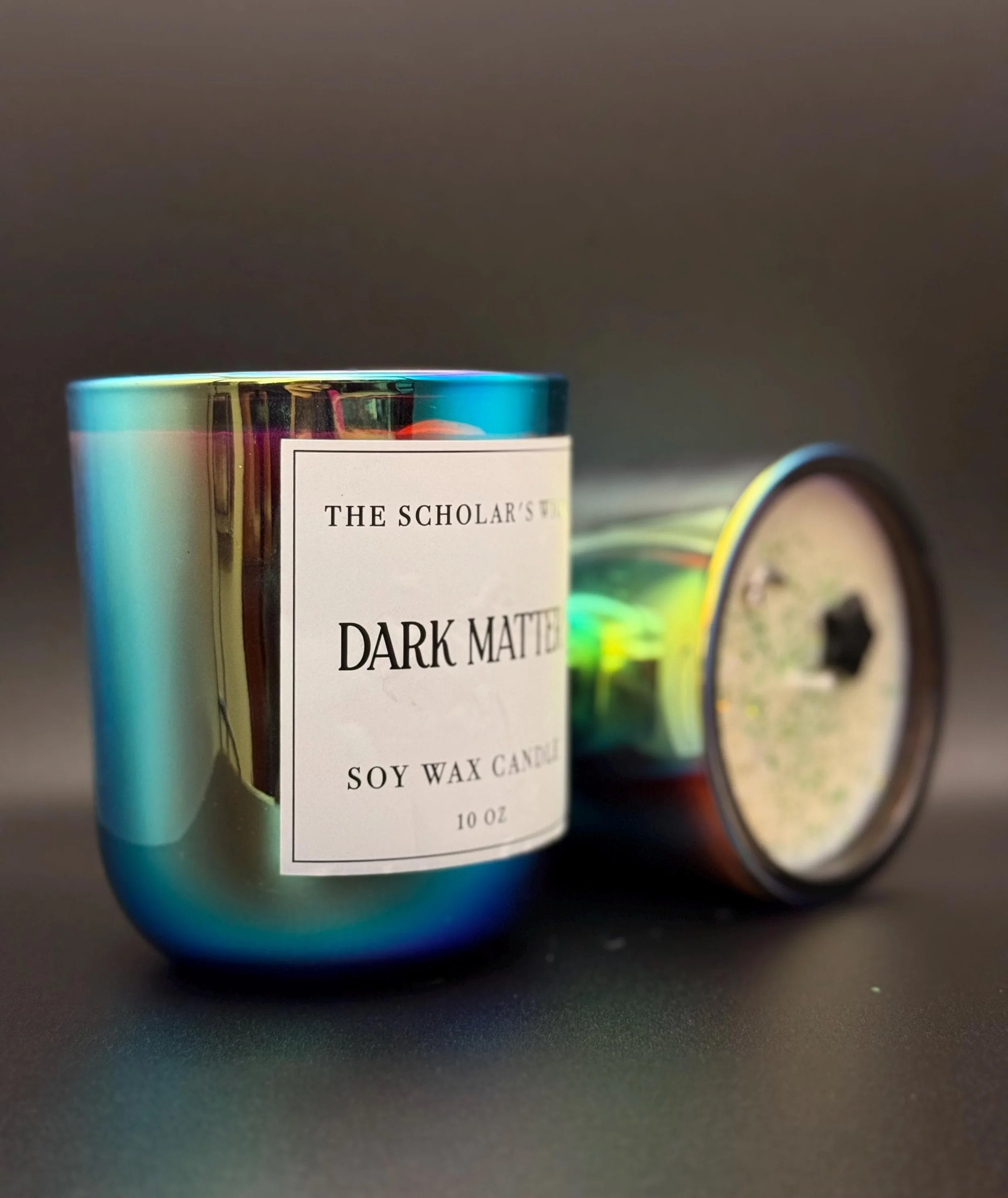 Dark Matter Candle Venture into the mysterious and captivating depths of the cosmos with our Dark Matter Candle. This stunning candle is designed for those who embrace the enigmatic beauty of the universe. Encased in a sleek, dark vessel that reflects the allure of the night sky, the Dark Matter Candle is as intriguing as the celestial phenomena it’s named after. As you light the Dark Matter Candle, you’ll be enveloped by the intoxicating scent of moonflower nectar. This enchanting fragrance combines the sweet, floral notes of moonflowers with soft undertones that evoke the serenity of a peaceful night under the stars. The aroma fills your space with a sense of calm and wonder, reminiscent of late-night stargazing on an alien world. The candle’s deep, rich design enhances its cosmic theme, making it a striking addition to any room. It’s perfect for creating an atmosphere of mystery and elegance during your sci-fi movie nights, reading sessions, or quiet moments of reflection. Light the Dark Matter Candle to transform your environment into a celestial sanctuary. Let its mesmerizing scent guide you through the cosmos, inspiring dreams of exploration and discovery as you embrace the beauty of the unknown.
