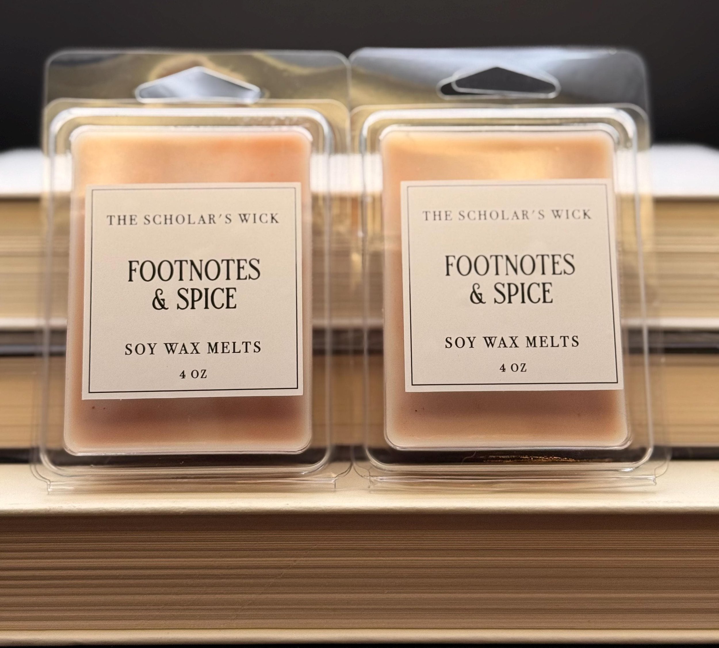 Introducing Footnotes and Spices Wax Melts Step into the past with our intriguing Footnotes and Spices wax melts, specially crafted for history enthusiasts! These unique melts blend rich, aromatic spices that evoke the essence of historical journeys and the stories that shaped our world. As you melt Footnotes and Spices, the warm and inviting fragrance fills your space, transporting you to distant lands and bygone eras. Picture yourself in a bustling marketplace, where the air is fragrant with exotic spices, or in a cozy study, where the scent of leather-bound books and aged parchment mingles with delightful spices, inviting exploration and discovery. Perfect for enhancing your reading experience while you delve into historical narratives or biographies, Footnotes and Spices creates an atmosphere that sparks curiosity and ignites a love for learning. Let the comforting aroma inspire you as you uncover the fascinating tales of our past, filling your space with warmth and wisdom. Embrace the stories behind the spices and let Footnotes and Spices enrich your journey through history!