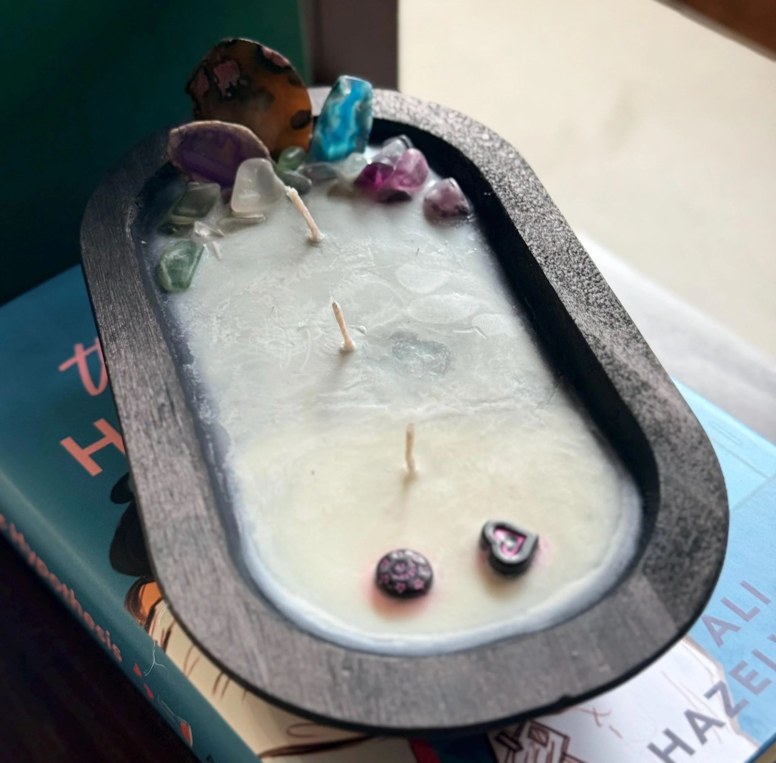 Step into a world where stories come alive under the glow of the moon with Gaiman’s Moonlight Library. Housed in a rustic wooden bowl, this candle blends the rich scent of aged books, blackcurrant, and night-blooming jasmine, evoking quiet corners of a magical library bathed in silver light.
