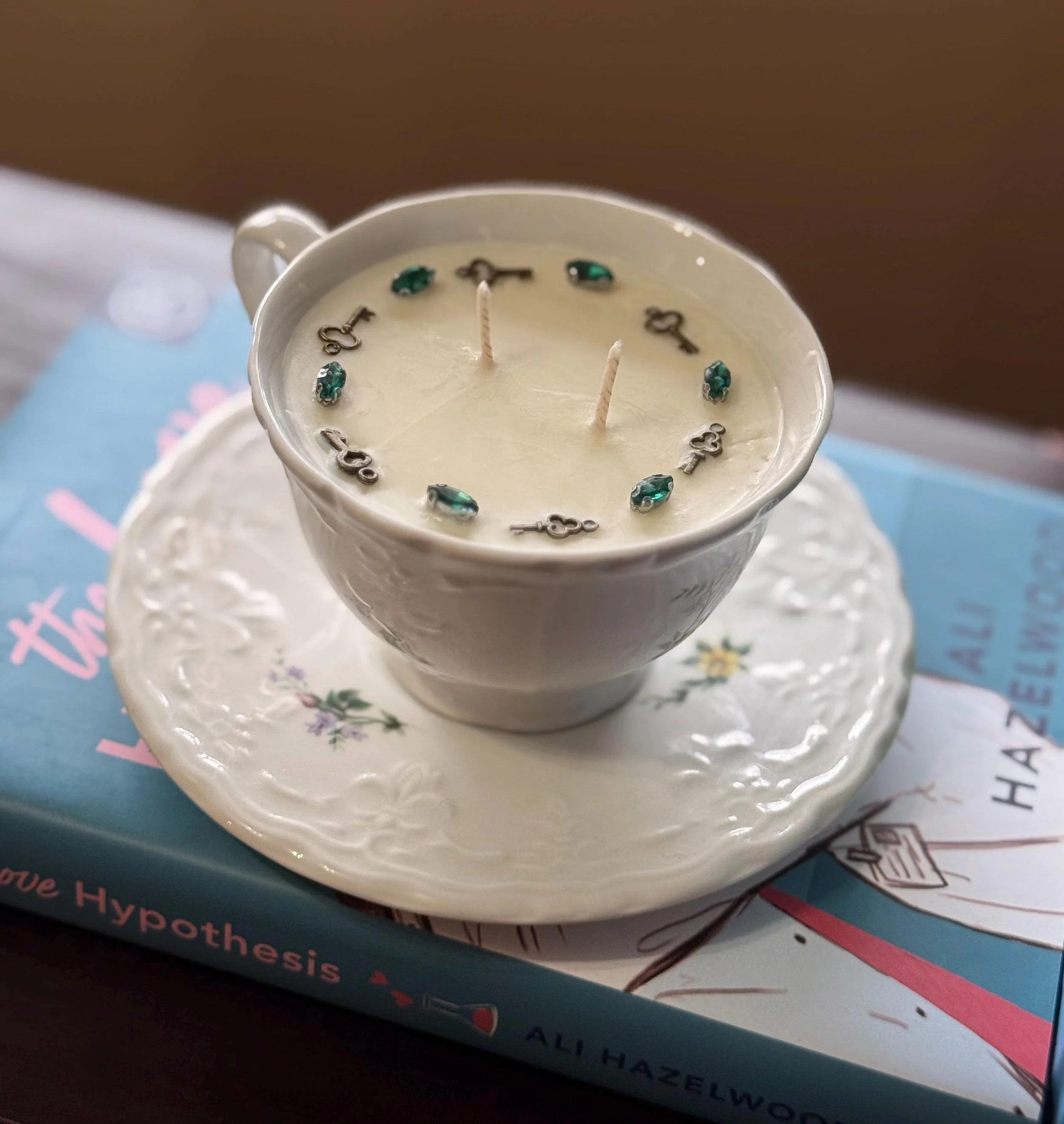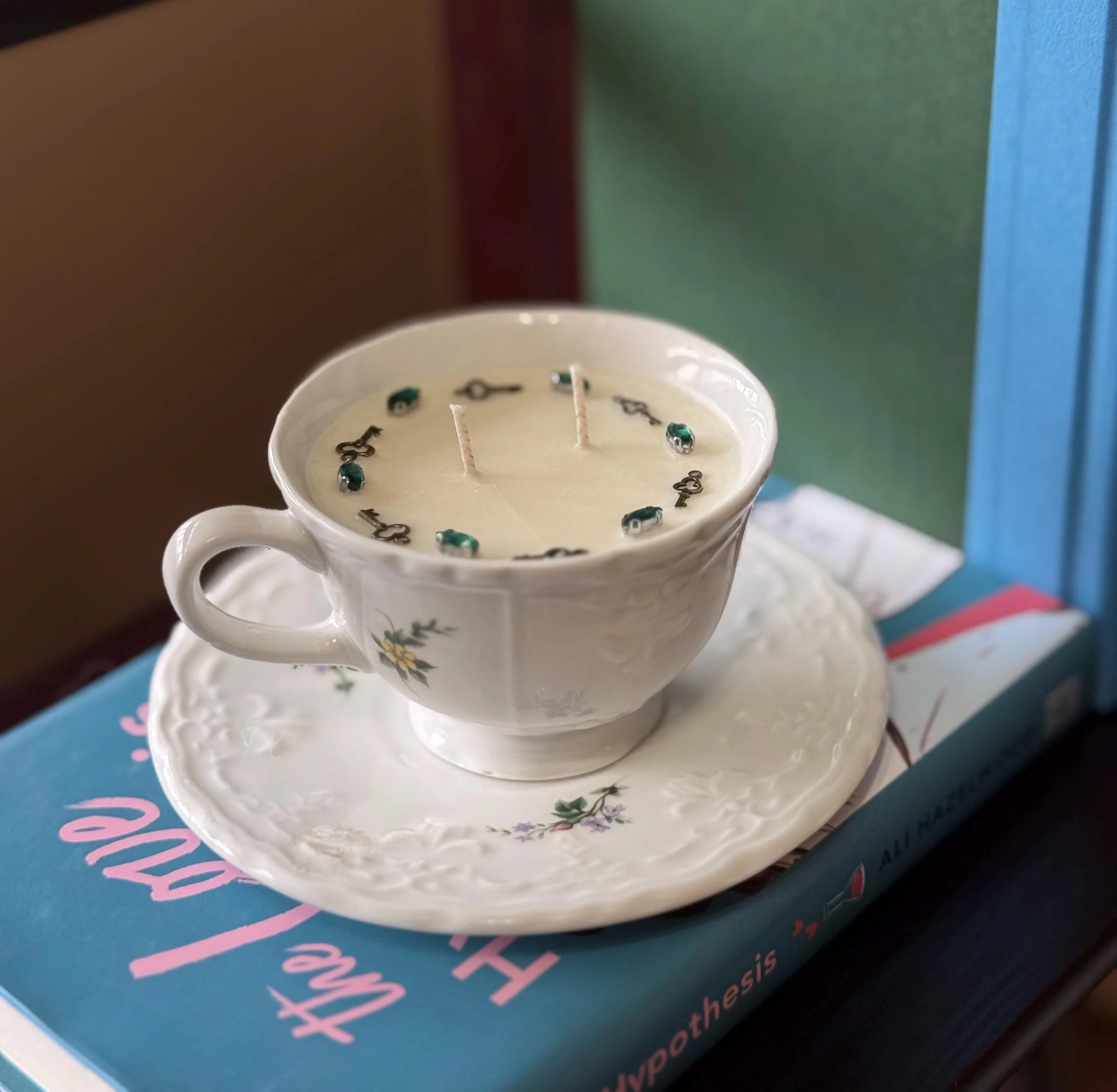 Like a treasure discovered in a forgotten palace cabinet, this jeweled teacup candle is a piece of pure enchantment. Adorned with delicate vintage keys and glimmering gems, it feels as though it once belonged to a royal confidante — the keeper of secrets, letters, and midnight wishes.