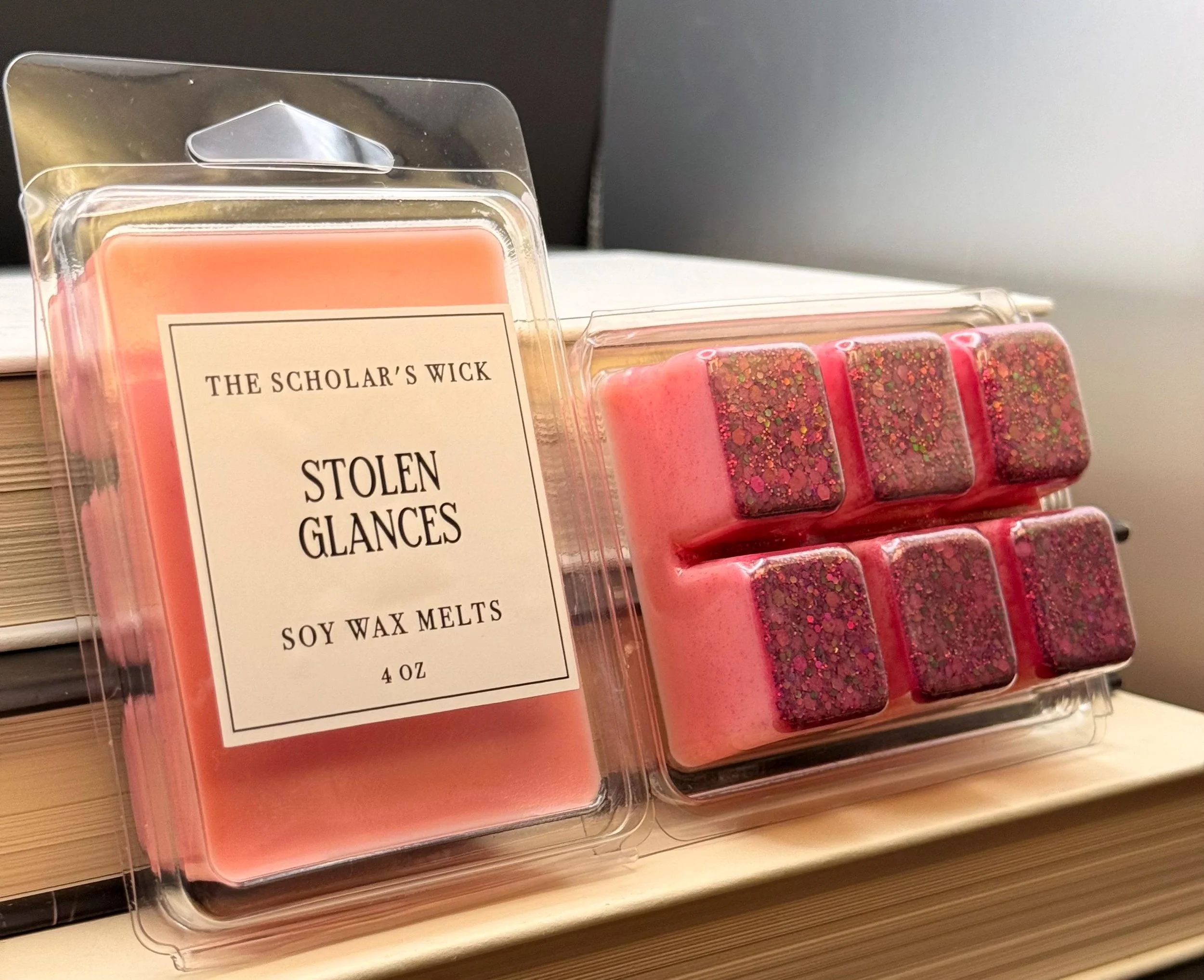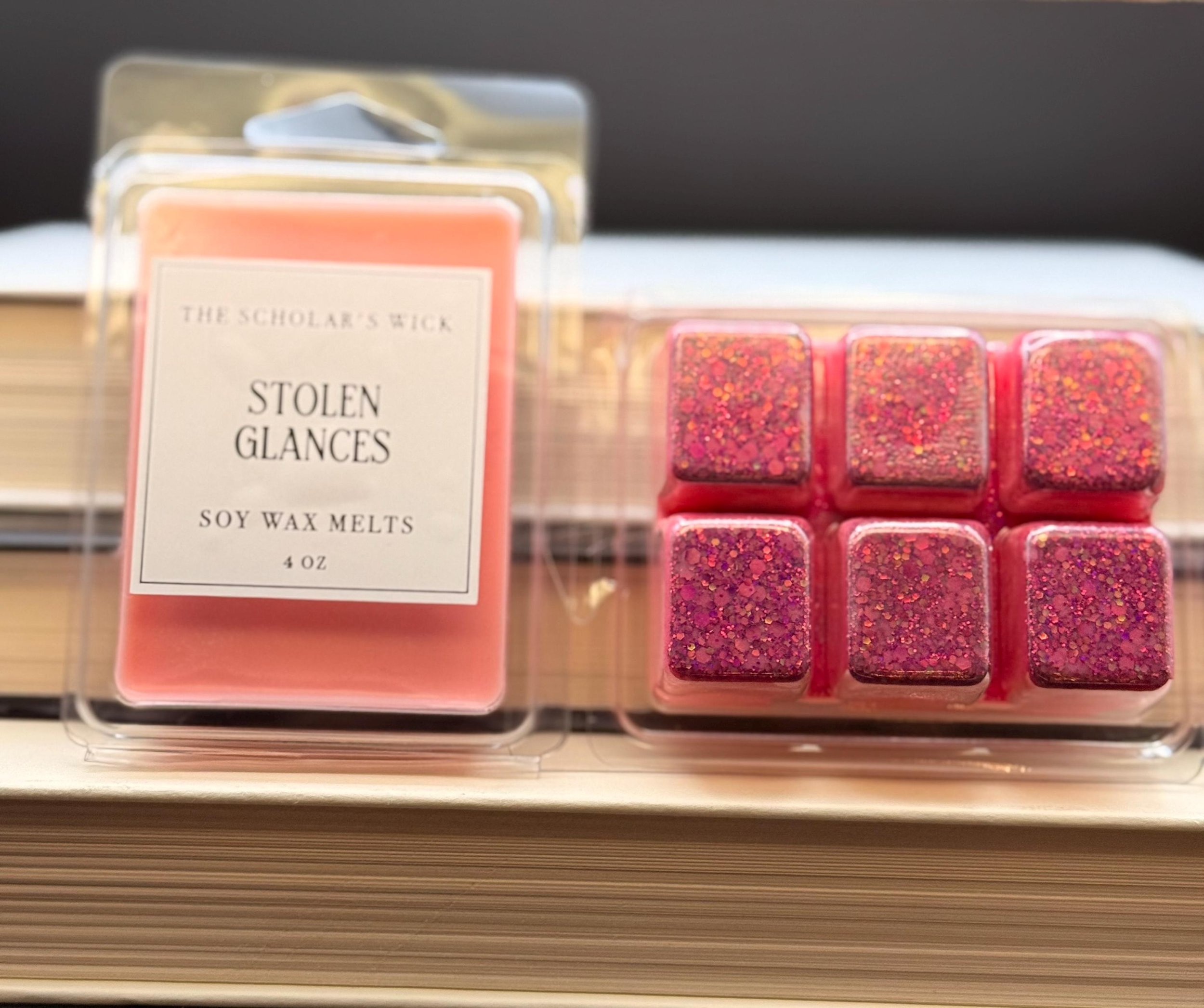 Introducing Stolen Glances Wax MeltsIgnite the flames of passion with our alluring Stolen Glances wax melts, specially crafted for romance enthusiasts! Infused with a sensual blend of sweet spices, these melts are designed to evoke the intoxicating thrill of love stories filled with desire and longing. As you melt Stolen Glances, let the warm, seductive fragrance envelop your space, creating an intimate atmosphere perfect for curling up with your favorite romantic novel. The sweet spices dance in the air, reminiscent of whispered secrets and stolen moments, inviting you to lose yourself in the enchantment of love's embrace. Whether you’re reading about a whirlwind romance or a slow-burn love story, Stolen Glances enhances the magic of every page. Allow the captivating scent to awaken your senses and set the mood for unforgettable evenings filled with passion and connection. Embrace the sweetness of romance and let Stolen Glances be your companion on this journey of love!