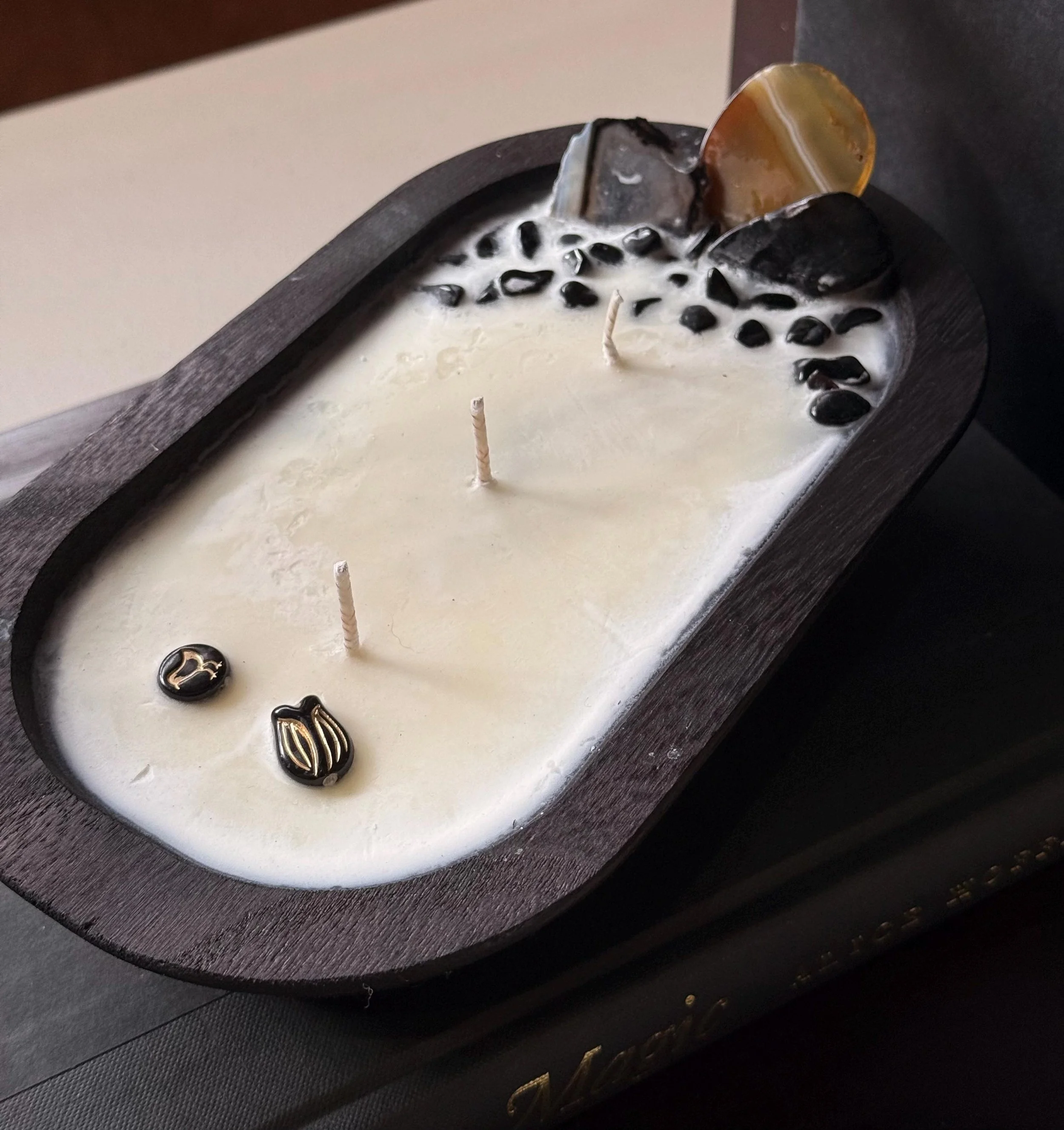 Tolkien’s Hearth Candle Bring the warmth and wonder of Middle-earth into your home with Tolkien’s Hearth. Housed in a rustic wooden bowl, this candle captures the cozy charm of a quiet hearth by a forested cabin. Rich notes of fir, moss, and ancient oak mingle with the subtle smokiness of a well-loved fireplace, evoking the feeling of wandering through enchanted woods and settling in for a peaceful evening by the fire. Perfect for readers, dreamers, and adventurers, this candle invites you to pause, breathe, and lose yourself in the magic of a world both timeless and familiar. Its natural wooden vessel makes it a keepsake long after the flame has burned down.